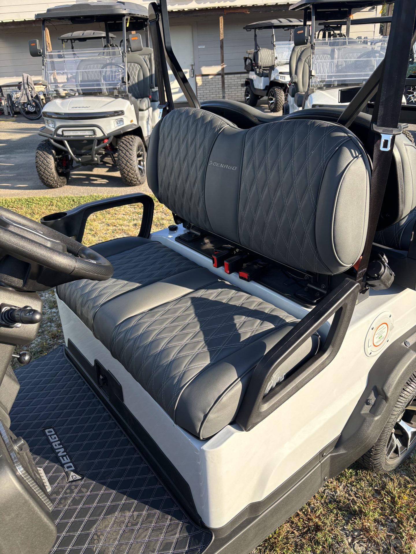 Introducing the 2025 Denago EV Nomad, a cutting-edge golf cart that redefines convenience and style on the greens and beyond. Designed for those who demand more from their ride, this brand-new Nomad model combines futuristic design with innovative technology to create the ultimate golf cart experience. Powered by a state-of-the-art Lithium-Ion battery, the Denago EV Nomad offers exceptional efficiency and performance, ensuring you have the power to tackle any course effortlessly. Say goodbye to traditional power worries—this eco-friendly powerhouse is ready to roll with clean energy. The Nomad’s spacious seating capacity comfortably accommodates up to four passengers, making it the perfect choice for a fun outing with friends or family. Whether you’re navigating the fairways or cruising through your neighborhood, the Denago EV Nomad provides a smooth and comfortable ride for everyone. Crafted with attention to detail, this golf cart boasts a sleek and modern design that turns heads wherever it goes. The 2025 model features the latest in automotive technology and design, ensuring you stay ahead of the game with style and sophistication. Why settle for ordinary when you can enjoy the extraordinary with the 2025 Denago EV Nomad? Elevate your driving experience and explore the possibilities with this exceptional golf cart. It’s not just a ride; it’s a statement.