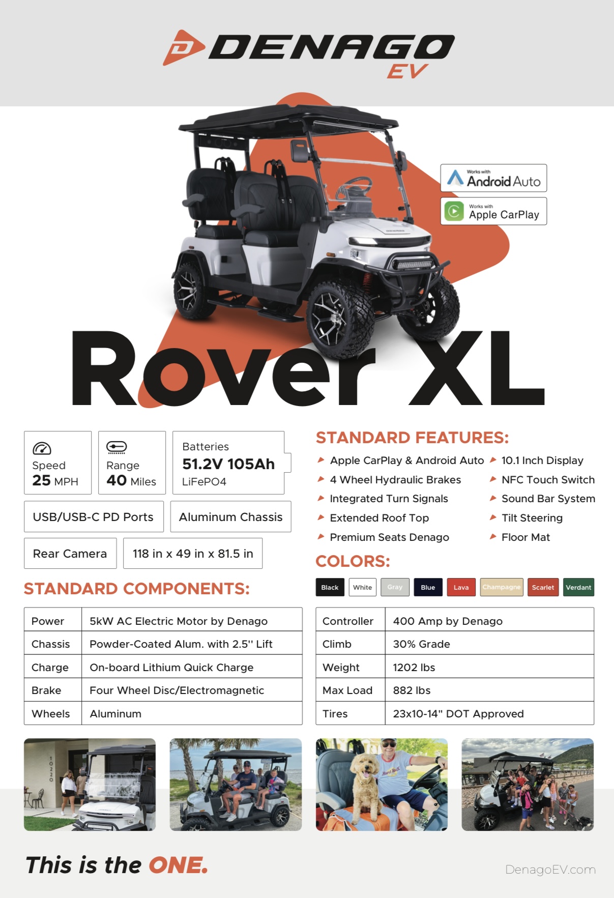 Introducing the all-new 2025 Denago EV Rover XL Golf Cart, where cutting-edge technology meets classic leisure. Elevate your golfing experience or simply cruise around your community in style with this state-of-the-art vehicle, designed for those who appreciate both performance and elegance. The Rover XL is powered by an advanced Lithium-Ion battery system, providing you with a smooth, efficient, and environmentally friendly ride. Say goodbye to the days of noisy engines and hello to the quiet, serene experience only an electric vehicle can offer. With its impressive energy efficiency, you’ll enjoy longer rides and shorter charging times, ensuring more time spent on the course or exploring your neighborhood. This premium golf cart comfortably seats up to four passengers, making it perfect for family outings, group golfing sessions, or simply enjoying a leisurely drive with friends. The spacious seating arrangement ensures that all passengers travel in comfort, with ample legroom and luxurious upholstery that adds a touch of sophistication. Being a 2025 model, the Rover XL arrives fresh from the production line, showcasing the latest in design and technology. Its sleek, modern exterior is sure to turn heads, while the intuitive dashboard and control system make operation a breeze. Every detail has been meticulously crafted to provide an unparalleled driving experience. Whether you’re a golf enthusiast or someone who enjoys a stylish, practical form of transportation, the Denago EV Rover XL is the perfect choice. Embrace the future of leisure mobility with this exceptional new golf cart. Don’t miss the chance to own a vehicle that combines innovative electric performance with unmatched comfort and style.