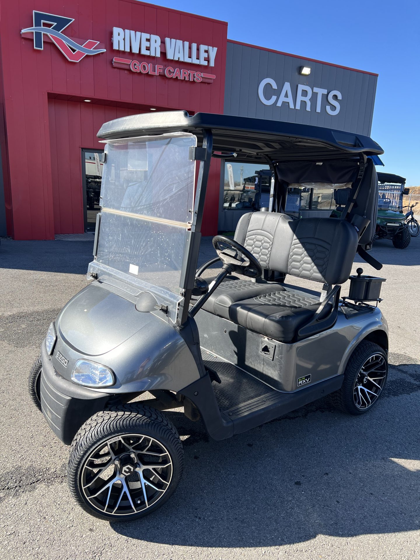 Experience the perfect blend of innovation and style with this 2020 E-Z-GO RXV Golf Cart, a remarkable choice for those seeking a reliable and efficient ride on the greens or around the neighborhood. This particular model, powered by a cutting-edge Lithium-Ion battery, promises both exceptional performance and eco-friendliness, ensuring you can enjoy longer rides with faster charging times and reduced maintenance compared to traditional batteries. The E-Z-GO RXV is renowned for its smooth handling and advanced features, making it a top choice for golf enthusiasts and casual riders alike. This refurbished gem offers a fresh take on a trusted classic, providing the assurance of quality and longevity. The sleek design and modern aesthetic are sure to turn heads, while the robust build guarantees a ride as smooth as your swing. With a seating capacity for two passengers, this golf cart is perfect for a day on the course or a leisurely drive with a friend. The comfortable seating and thoughtful layout ensure a pleasant journey, every time you hit the road. Whether you’re navigating tight turns or cruising straightaways, the RXV’s precision engineering promises unmatched maneuverability and control. Refurbished to the highest standards, this E-Z-GO RXV looks and feels like new, offering you the opportunity to own a premium golf cart without the premium price tag. Don’t miss out on the chance to elevate your golfing experience or daily commute with this outstanding vehicle. Ready to deliver a ride that’s both fun and functional, the 2020 E-Z-GO RXV awaits its next adventure. Are you ready to take the wheel?